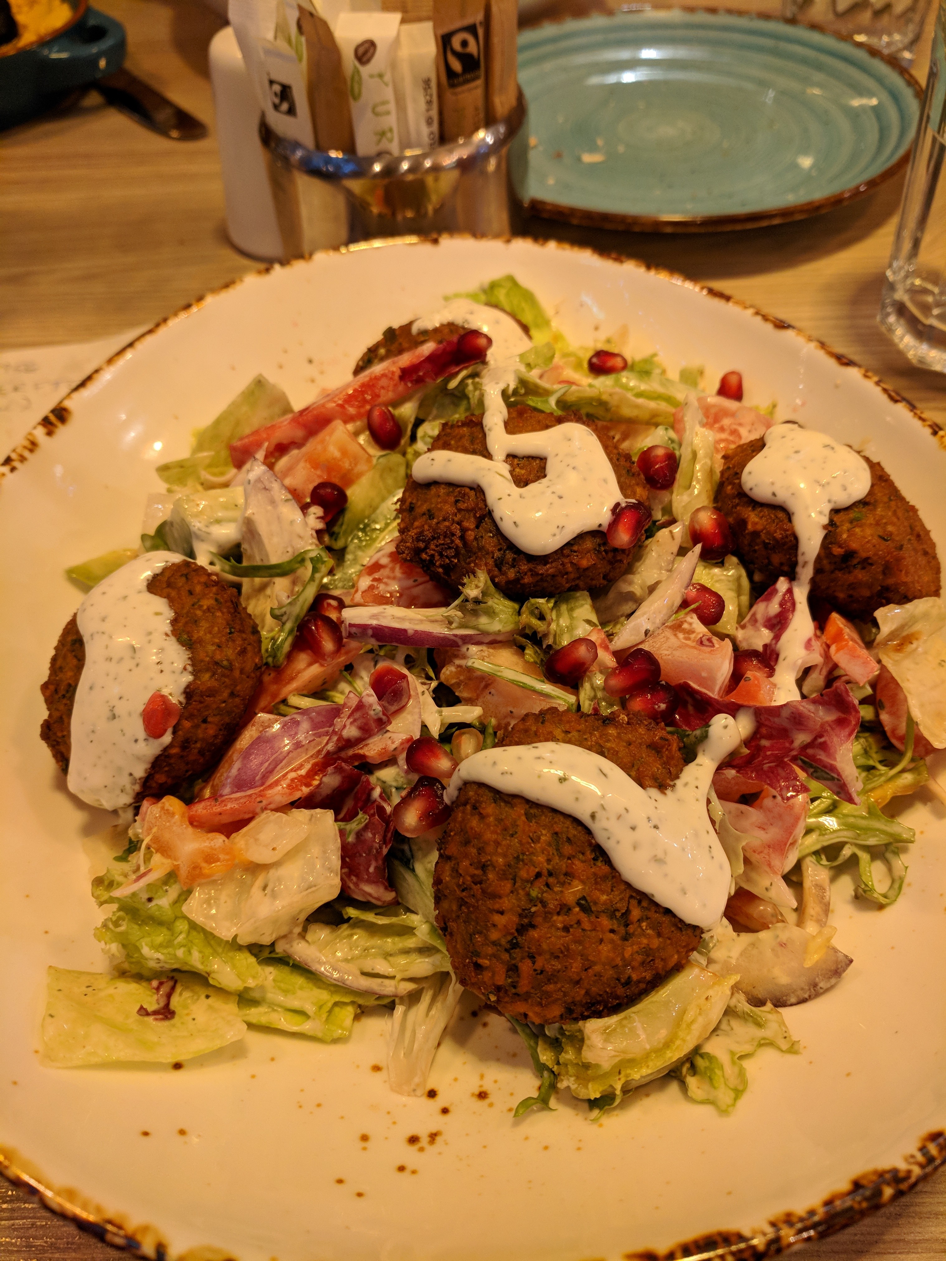 The other place I dined at in Galway was the Lighthouse Cafe. I met a friend for dinner here at this vegan and vegetarian spot. I ordered a salad with falafel and pomegranate arils. This will begin a pattern of me eating lots and lots of falafel so I apologize in advance for the lack of variety in the coming posts. This meal was as tasty as it was pretty.
